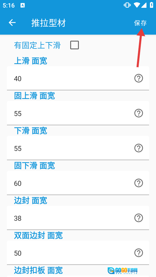 最后进入型材设置页面,在设置好各项参数后,我们点击【保存】按钮,即可完成型材添加的操作。