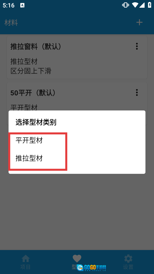 然后按照页面弹窗的提示,自主挑选希望添加的类别,比如【平开型材】或者【推拉型材】。