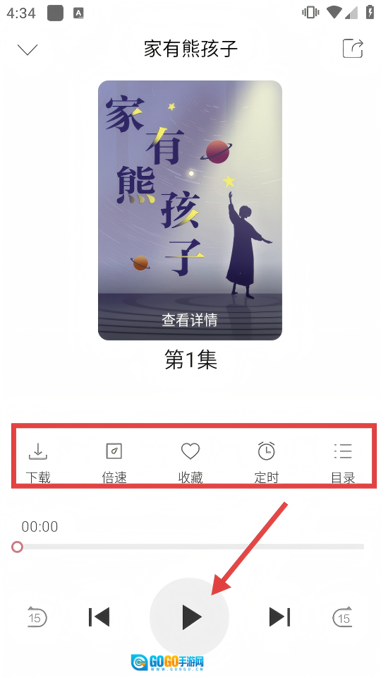 在课程播放页面,你可以利用【】【倍速】【收藏】【定时】【目录】这些功能按钮进行操作,点击播放按钮就能收听课程内容。