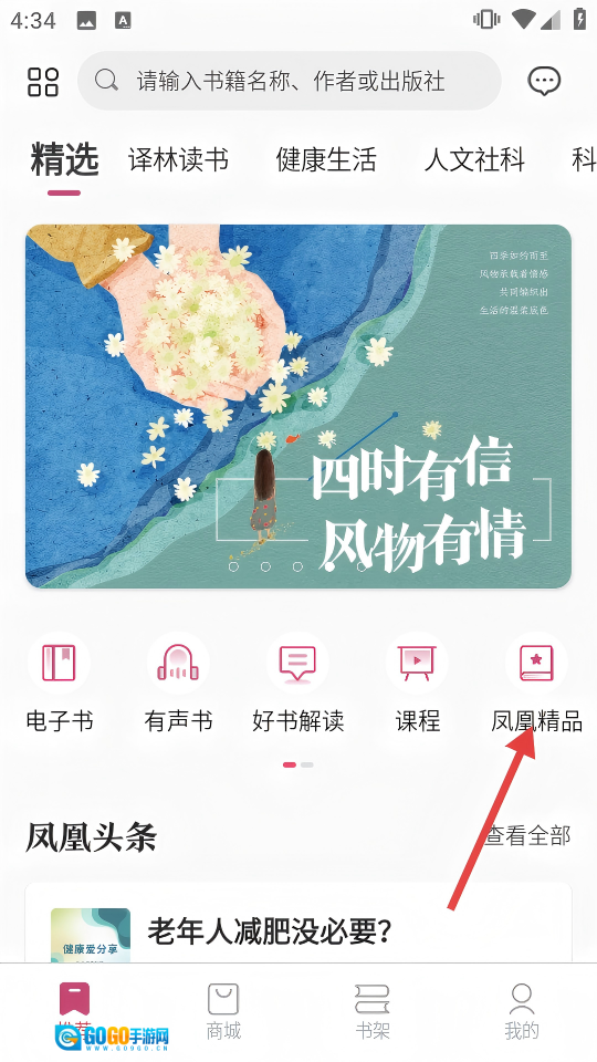 在推荐页点击【凤凰精品】,可进入课程推荐页面。