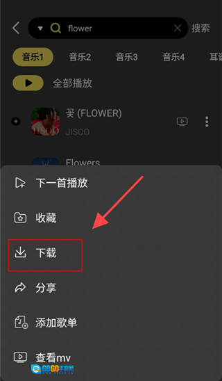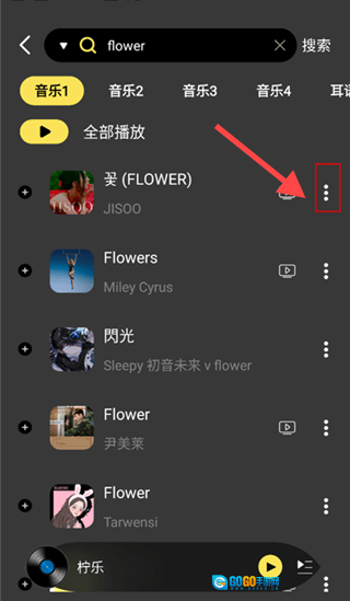 点击歌曲右侧红色框内的按钮。