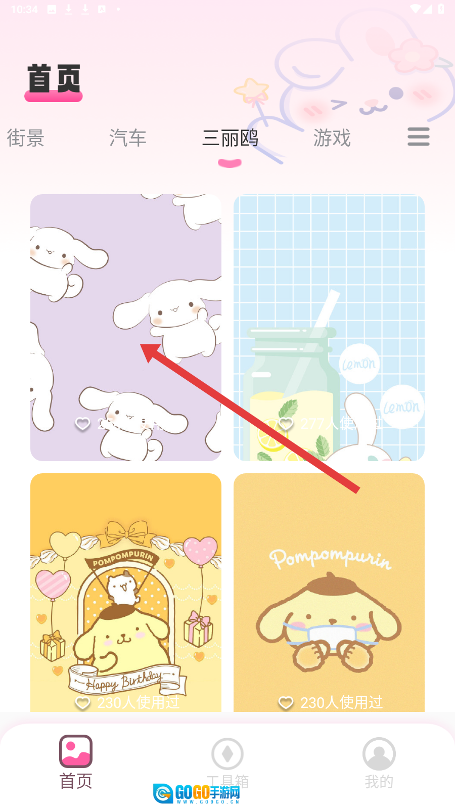 你可以在分类选项里找到【三丽鸥】这个分类并点击它,这样就能进入到对应的壁纸页面了。