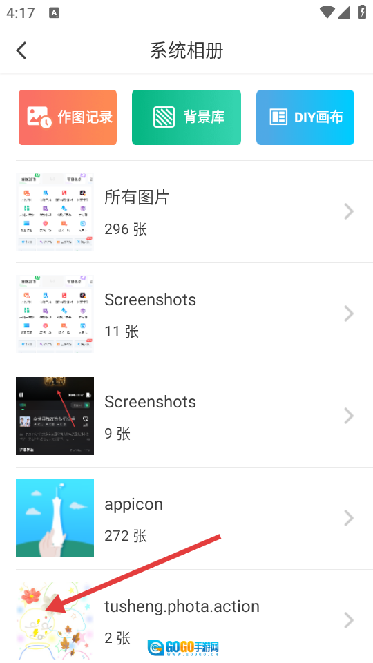 在系统相册界面,选中相册里的图片后,即可进入图片处理界面。