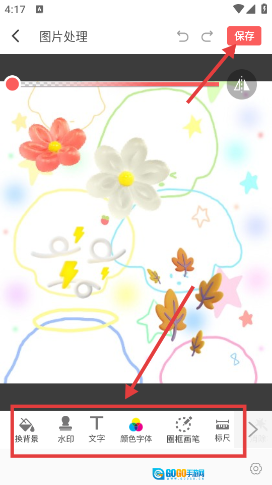 你可以利用换背景、添加水印、编辑文字等工具对内容进行修改,操作完成后点击【保存】按钮即可。