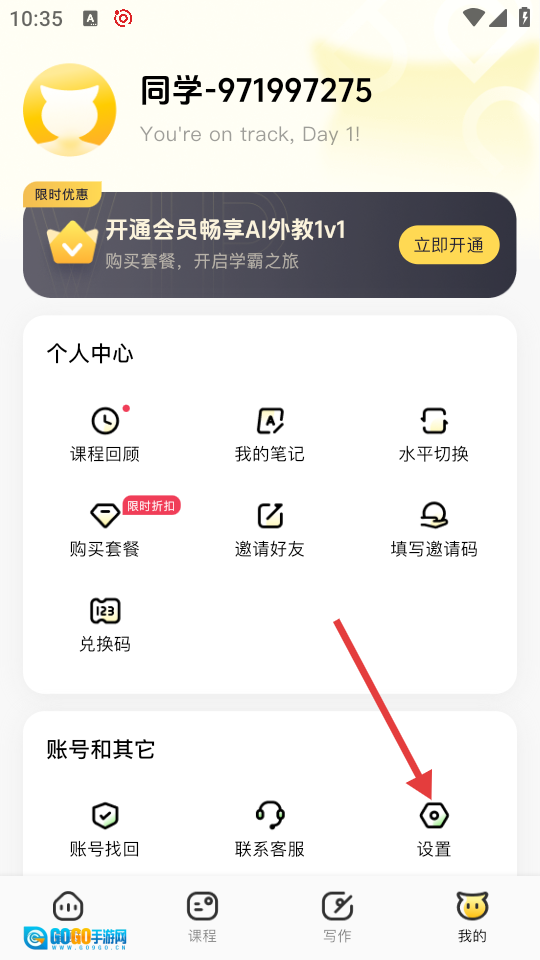 进入个人中心页面后,点击【设置】选项,即可进入账号设置页面。