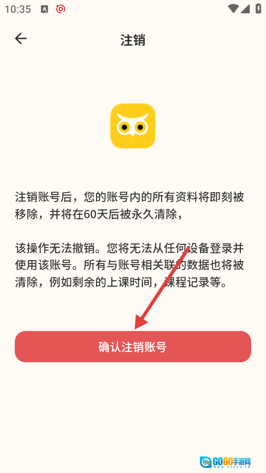 在注销确认页面里,点击【确认注销账号】按钮,就能完成账号注销操作。