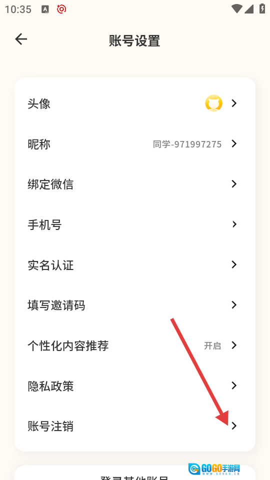进入账号设置页面后,找到并点击【账号注销】选项,即可跳转至注销确认页面。