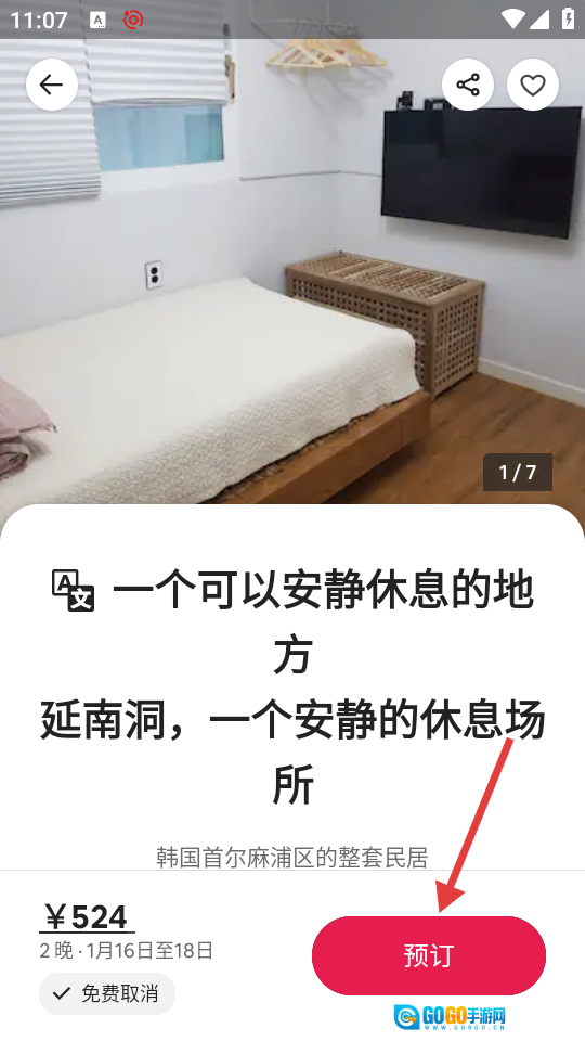 在首尔的房源列表页面,挑选你感兴趣的房源并点击进入详情页,就能查看该房源的具体信息与图片了。