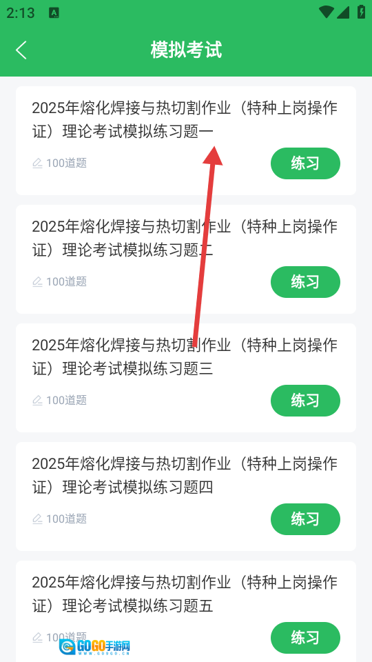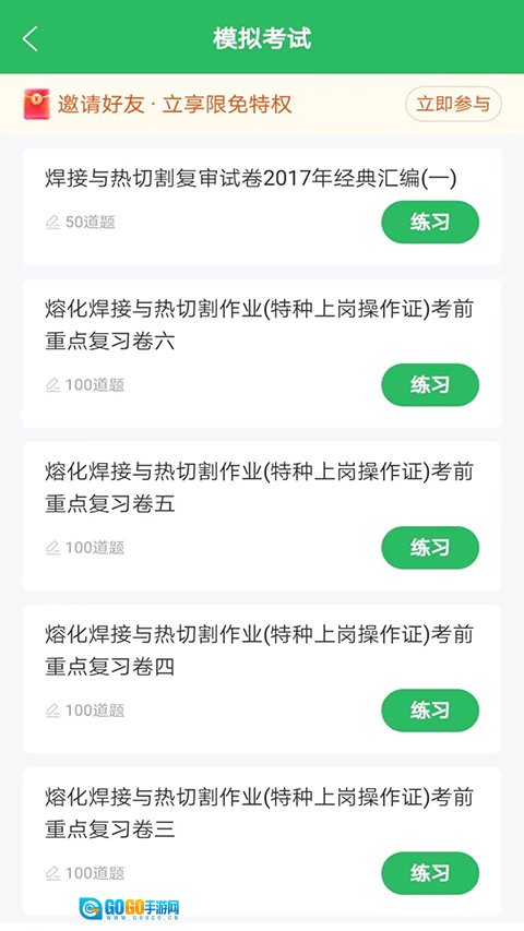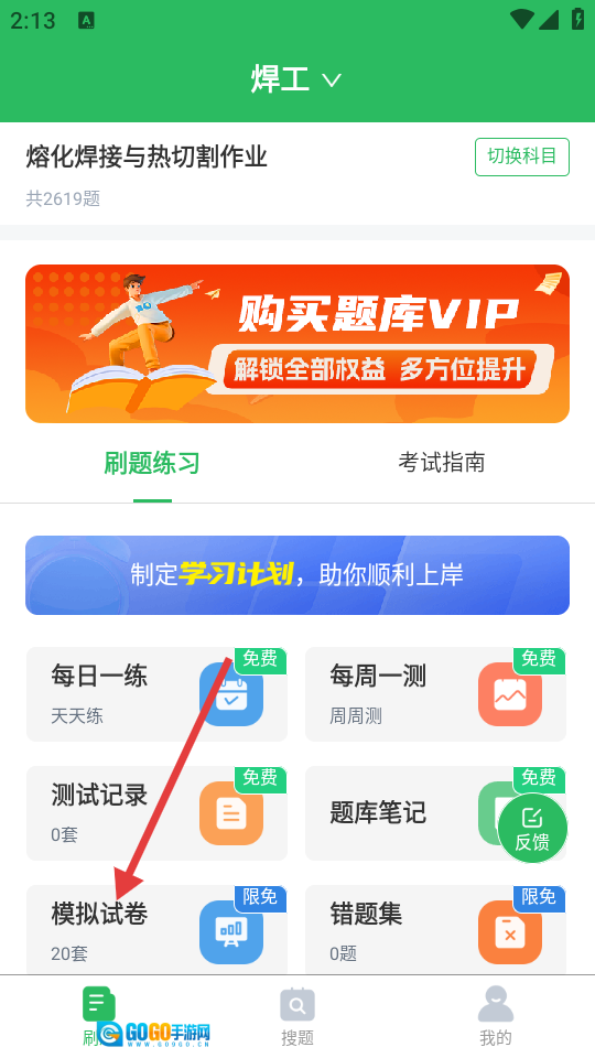 打开焊工考试,点击页面中的【模拟试卷】按钮。