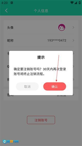 在个人信息页面,找到并点击【注销账号】选项,此时会弹出注销确认的提示窗口。