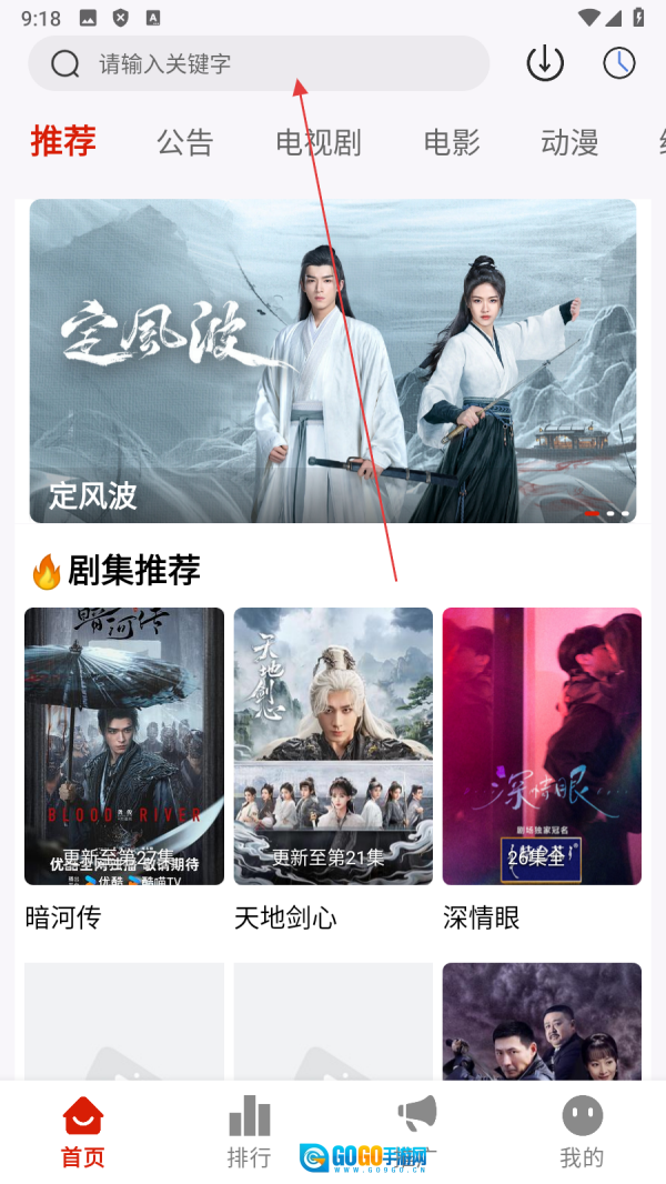 点击【顶部搜索框】,进入搜索页面。