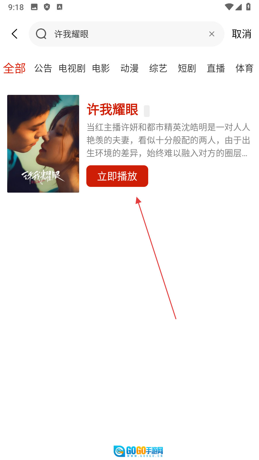 在搜索结果页面,点击【立即播放】按钮,即可进入影片的播放页面。