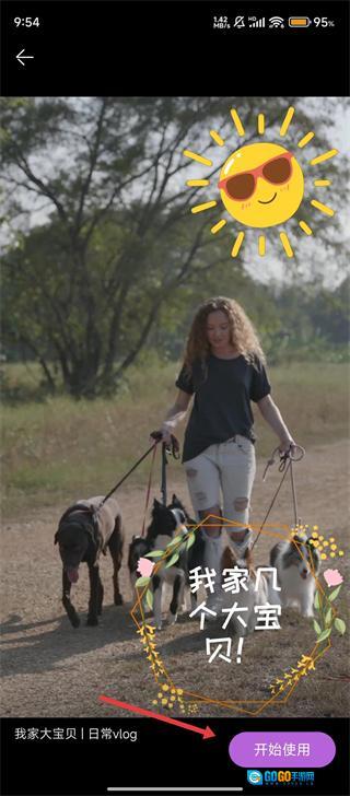 选中心仪的视频模板后,点击【开始使用】按钮,就能进入视频编辑环节,着手制作专属的宠物视频了。