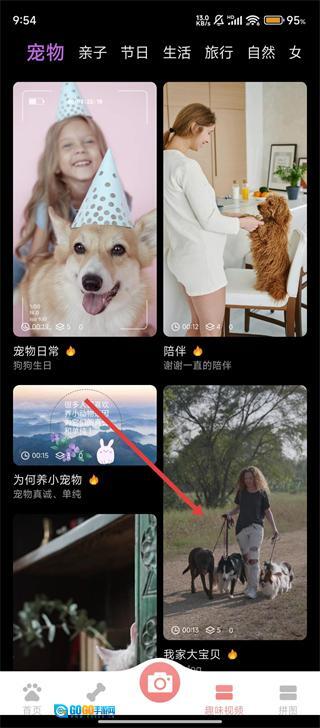 你可以点击【趣味视频】板块,接着选择【宠物】分类,然后就能浏览像【我家大宝贝】这类有趣的视频啦。