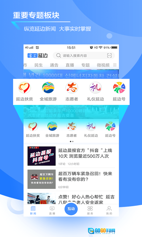 掌上延边是延边日报社推出的本土综合性新媒体平台,它深度融合了新闻传播、生活服务、政民互动等多种功能。平台设有头条、时政、民生、法治等多个优质栏目,能够权威且及时地报道全州的重大事件,此外还汇聚了美食商家查询、景点推荐、房屋出租等各类生活服务内容。