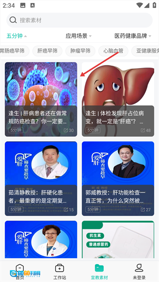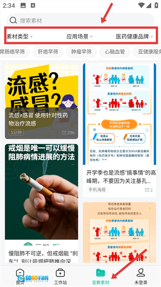 进入【宣教素材】页面后,可利用页面上方的【素材类型】【应用场景】等筛选栏开展筛选操作。