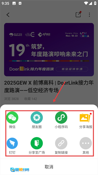 进入活动详情页面后,点击右上角的分享图标,即可弹出分享渠道的选择菜单。
