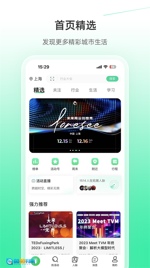 人脉圈:这里汇聚了众多精英人士,你可以随时了解行业同行动态、热门会议信息以及各类线下活动,借助这些活动来拓展和构建自己的人脉网络。