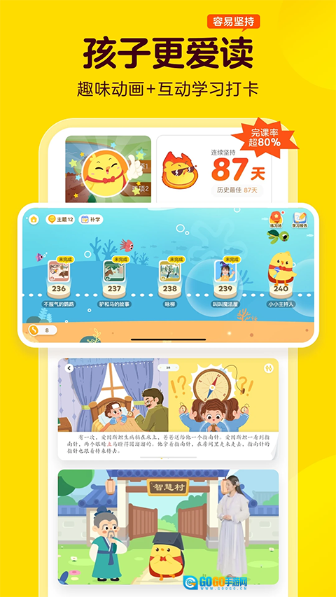 游戏化的学习方式及激励机制,保证学习动力