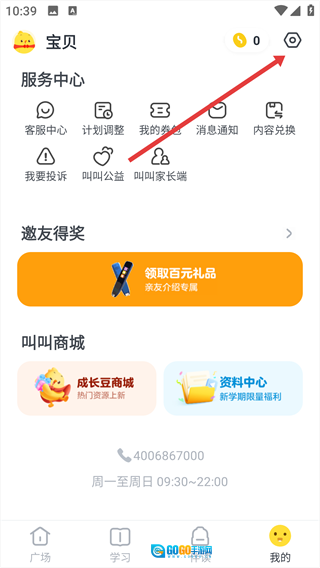 在个人中心页面,点击右上角的设置图标。