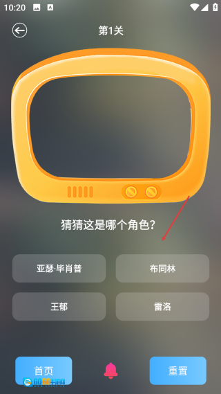 在答题页面,依据图片挑选【对应的角色选项】,就能完成该关卡猜电影角色的答题步骤。