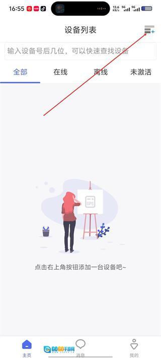 在“设备列表”页面,点击右上角的添加按钮,即可进入“扫描设备”界面。