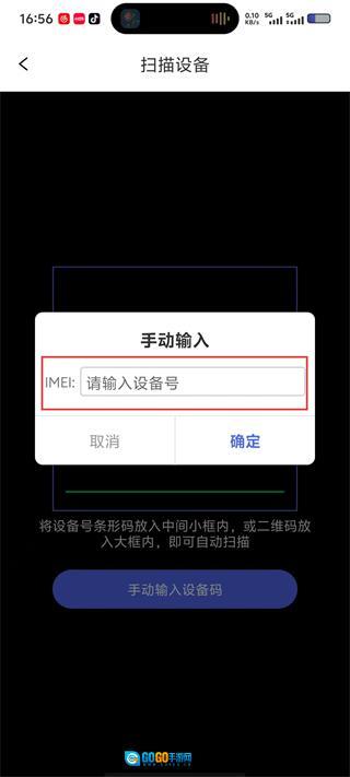 在“扫描设备”界面,点击【手动输入设备码】按钮后,会弹出“手动输入”对话框。