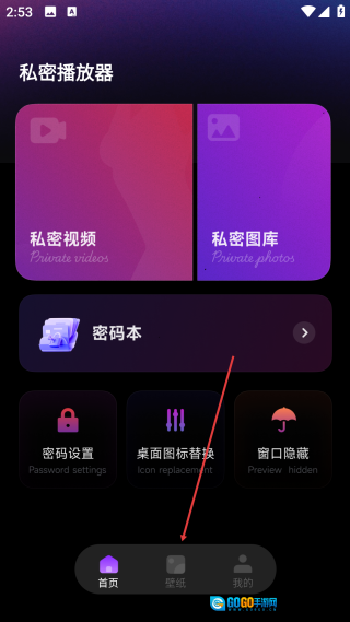 进入私密播放器页面后,点击底部的【壁纸】选项,即可进入动态壁纸的选择界面。
