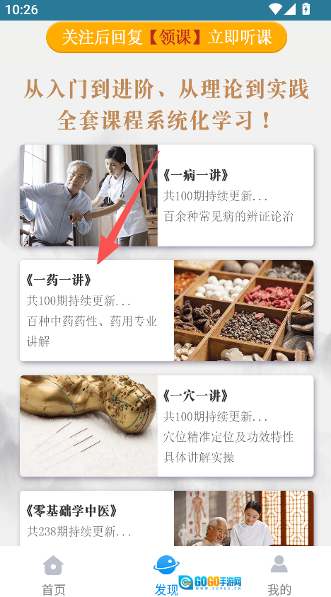 选择《一药一讲》课程,学习中药药性专业讲解。