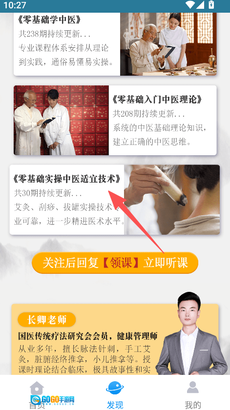 点击《零基础实操中医适宜技术》,学习艾灸、刮痧等实操内容。