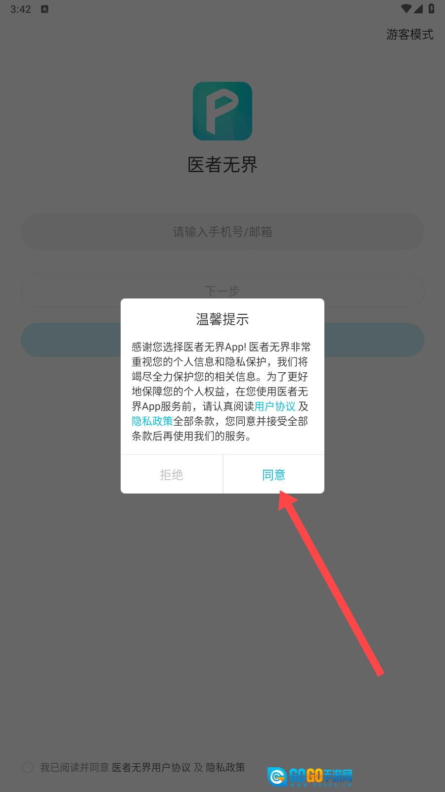 进入首页后,点击下方【圆圈】我已同意并阅读