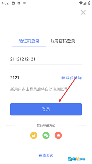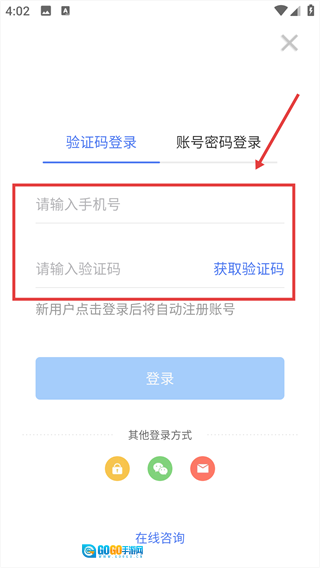在对应输入框中填写手机号和验证码。