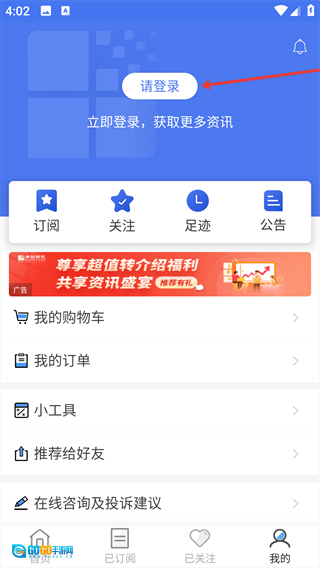在【我的】页面后,点击【请登录】按钮。