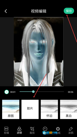 在滤镜选择页面,选好想要的效果后,点击右上角的“保存”按钮,就能完成视频编辑的保存步骤了。
