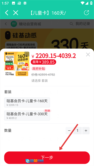 选定目标套装后,点击【下一步】按钮,即可完成商品购买流程。