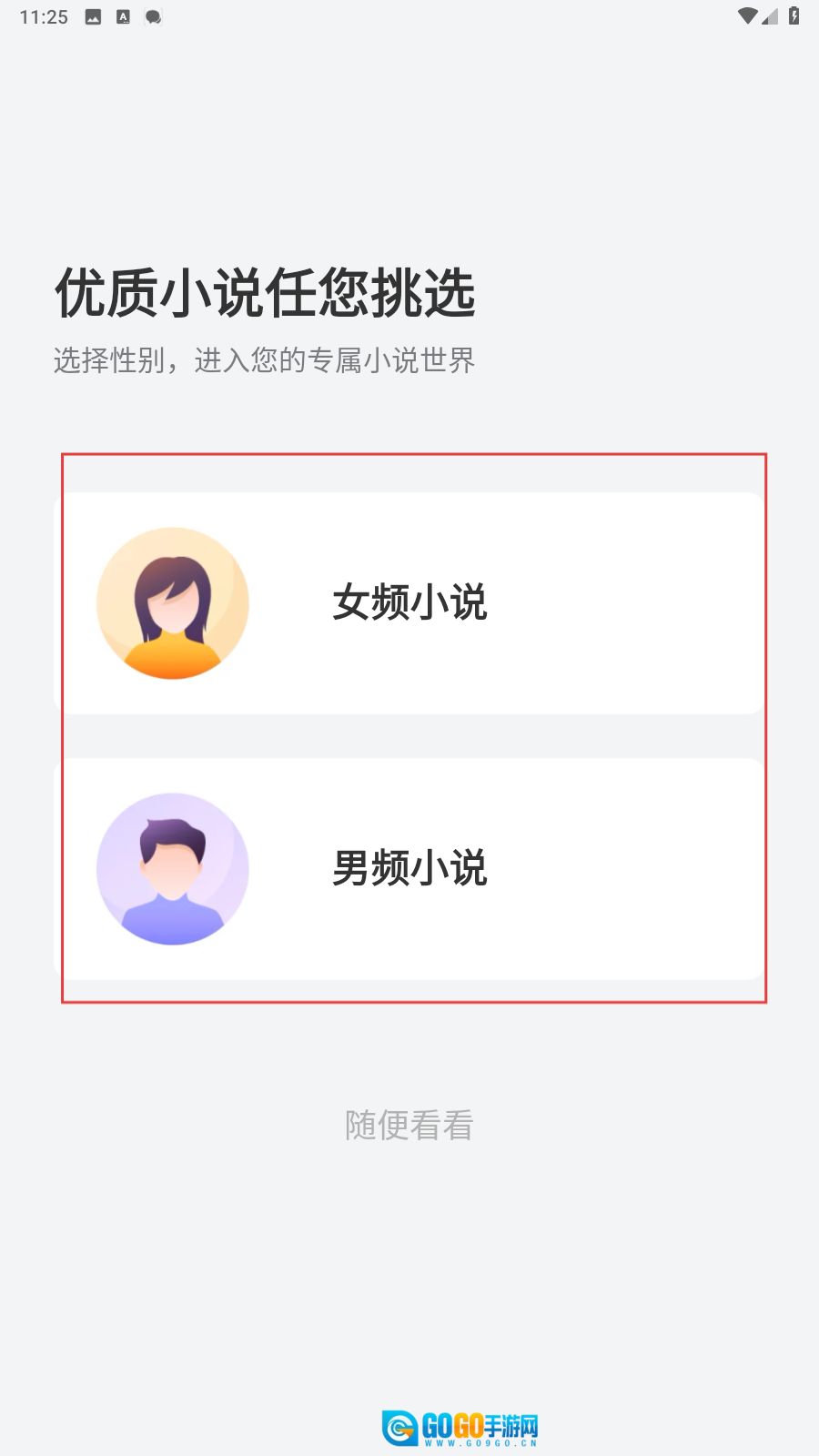 你可以选择【女频小说】或者【男频小说】,进入到对应的专属小说世界。