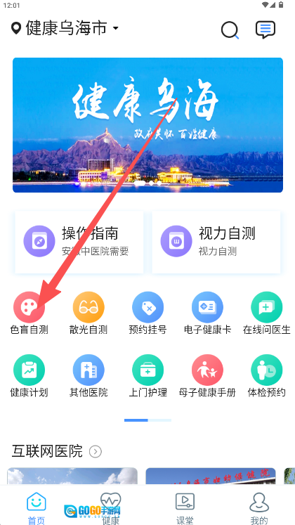 在首页找到“色盲自测”的红色图标并点击,即可进入色盲测试功能页面。