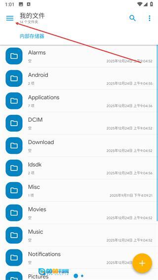 启动Solid Explorer应用,接着点击界面左上角的三条横线图标。