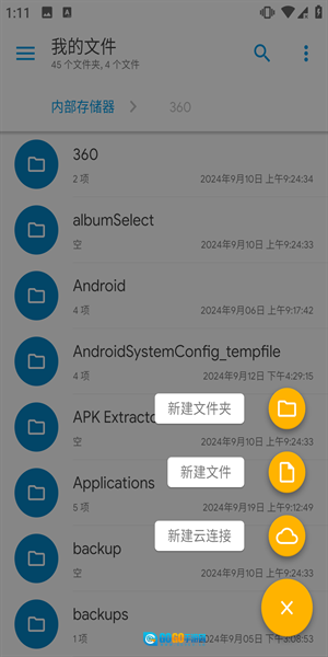 点击右下角的加号按钮,在这里你可以选择创建新文件夹、新文件,还能进行云连接等操作。