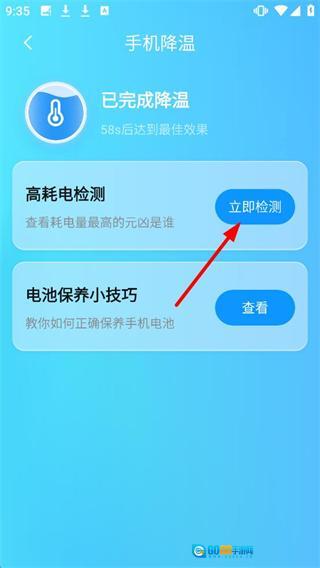 完成降温操作后,点击【高耗电检测】板块里的【立即检测】按钮。