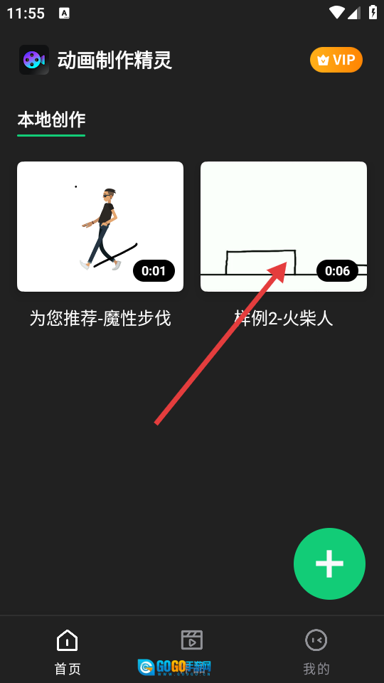在首页点击【样例2-火柴人】,即可进入动画编辑界面。