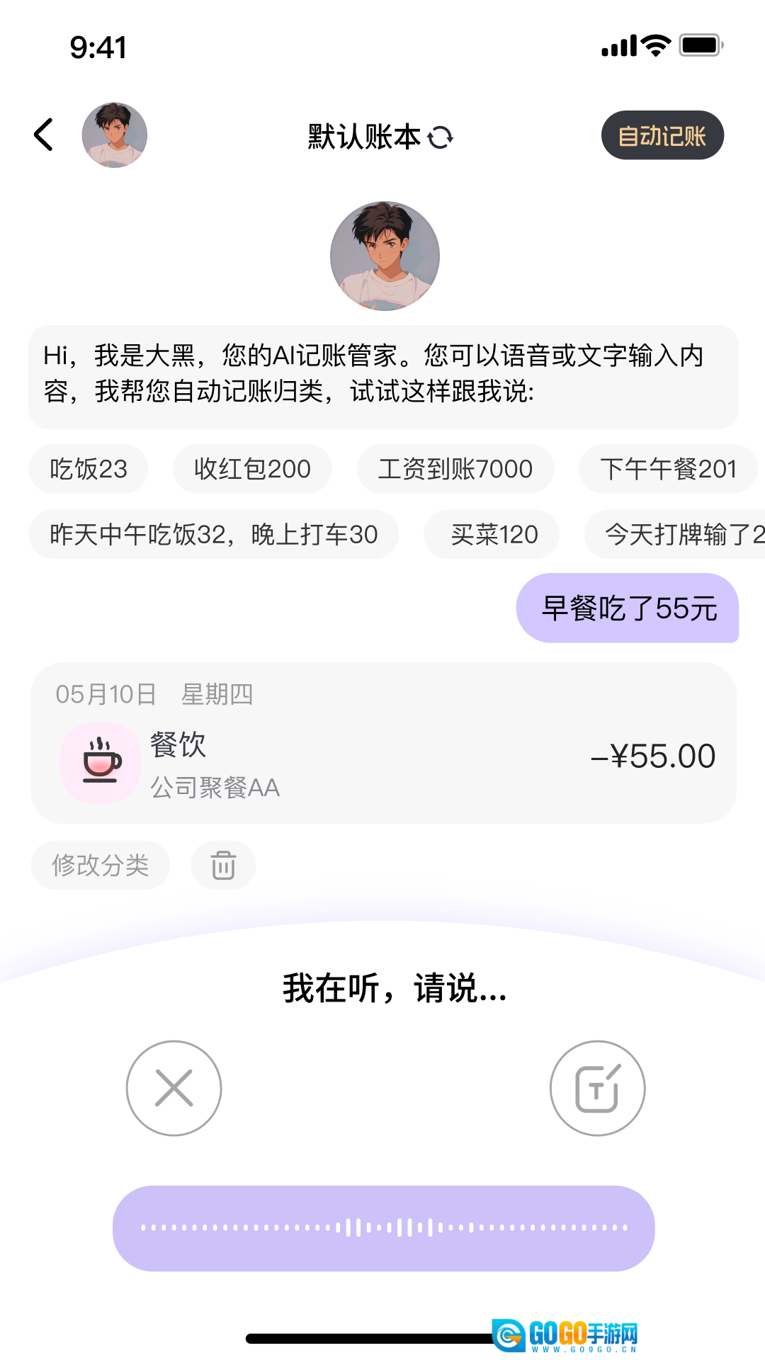 提供收支记录功能,点击加号即可添加收支信息,记录不同类别的日常收支明细内容。