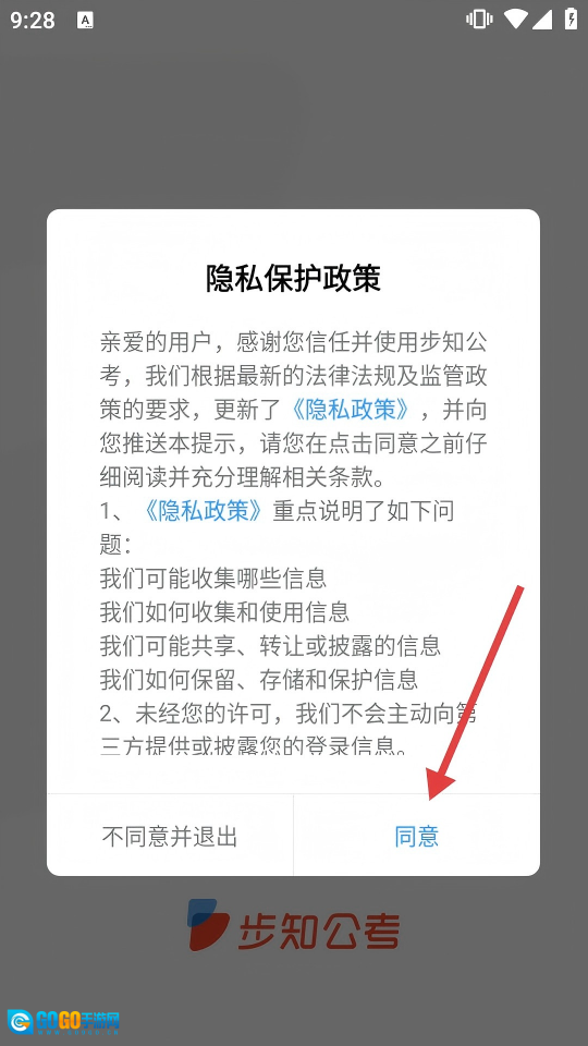 在隐私保护政策弹窗里点击【同意】按钮,即可进入登录页面。