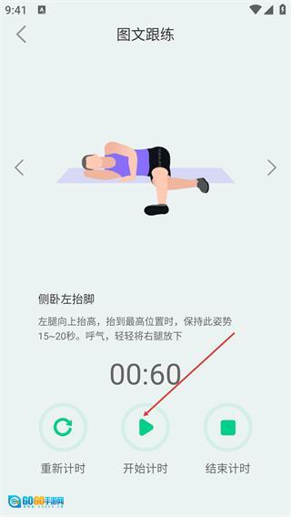 在图文跟练页面点击【开始计时】按钮,就能启动该动作的计时训练。