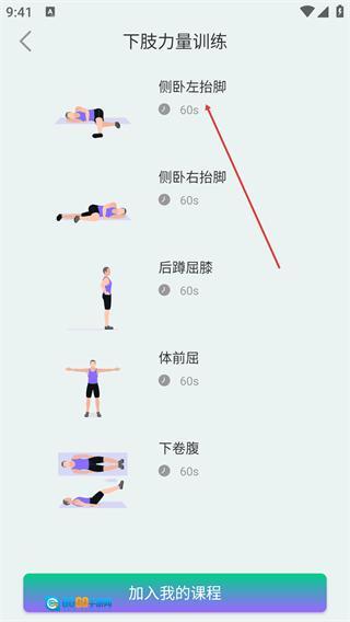 在首页点击课程计划里的训练条目,就能进入该训练的动作列表页面。