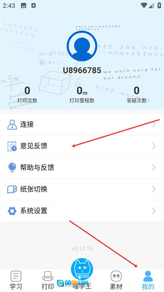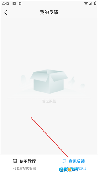 进入“我的反馈”页面后,点击底部的“意见反馈”按钮。
