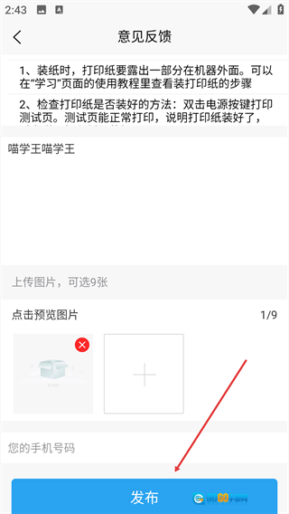 完成内容填写后,点击“发布”按钮,即可提交反馈内容。