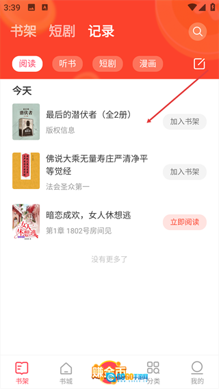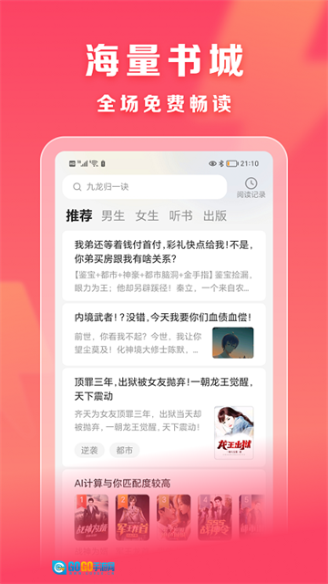 打开速读免费小说应用,进入“书城”板块挑选小说来阅读。