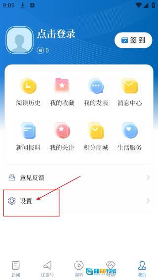 在【我的】页面,您可以执行【点击登录】-【签到】等操作,之后找到并点击【设置】选项,即可进入对应的设置界面。