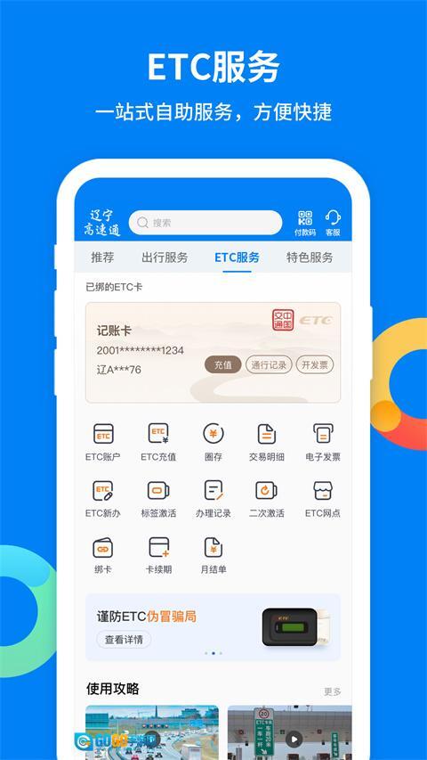 一站式账户管理服务:支持ETC账户余额查询、充值缴费、交易明细查看以及标签在线激活等功能,操作流程便捷高效。